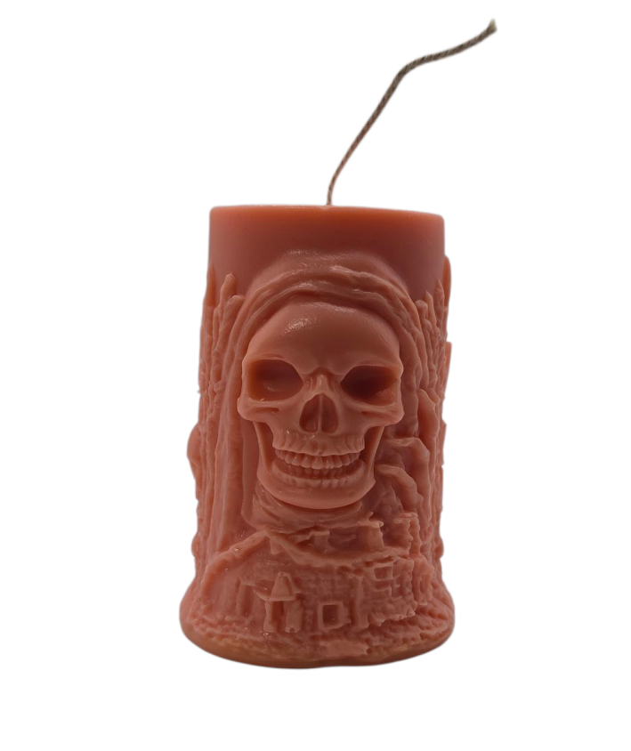 Apple Cider Spiced Smiling Skull Pillar Candle