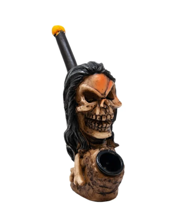 Black Hair Skull Polyresin Pipe