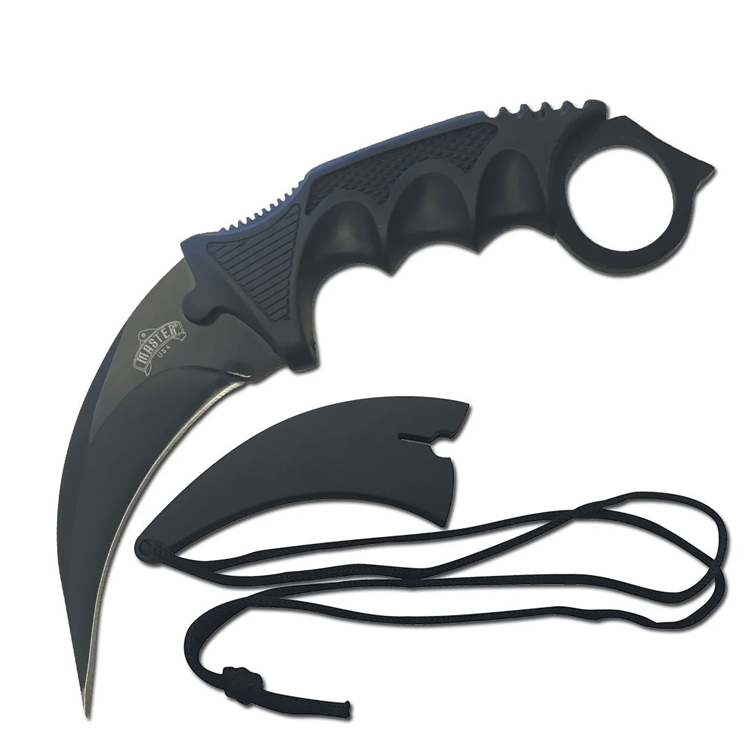 MASTER USA Black Stainless Steel Karambit Fixed Blade Knife