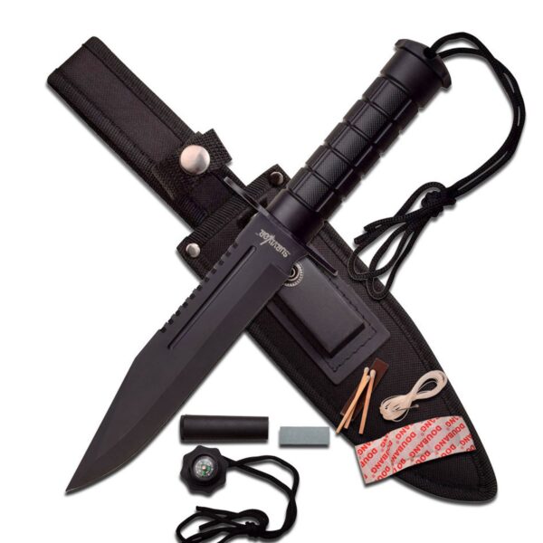 INCLUDES 600D NYLON SHEATH AND SURVIVAL KITS