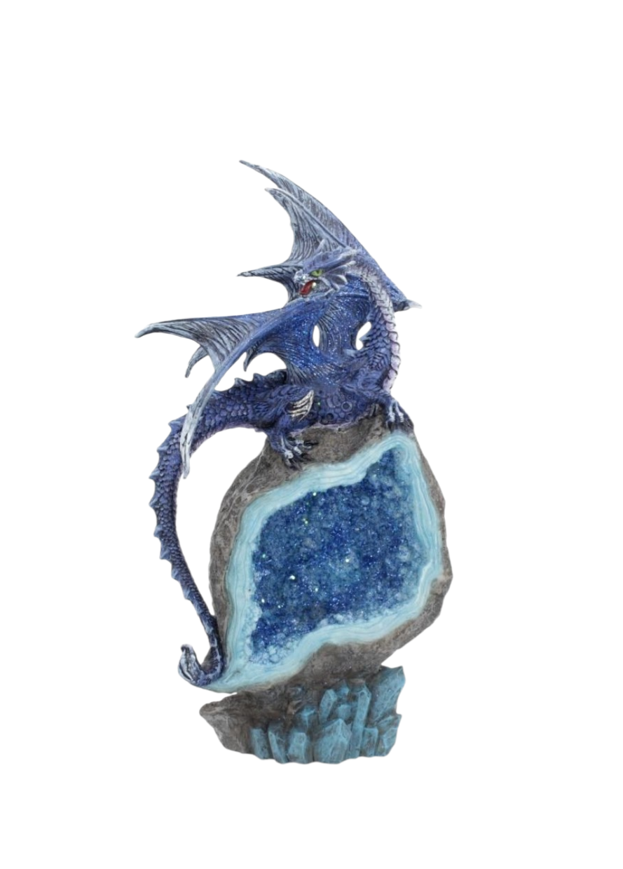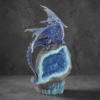 Colbalt Custodian Fantasy Blue Dragon Sitting On A Geode