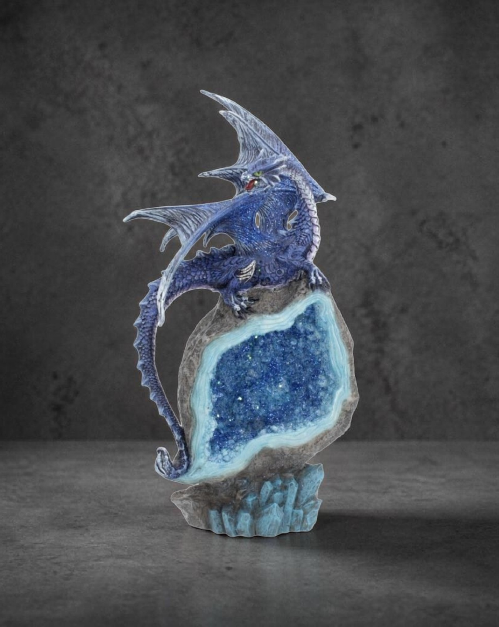 Middle, Revealing The Glistening Crystals Within. A Dragon On Top,