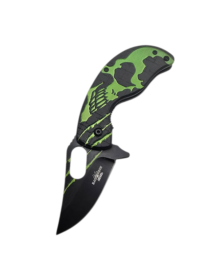 Green Skull Karambit Folding Pocket Knife