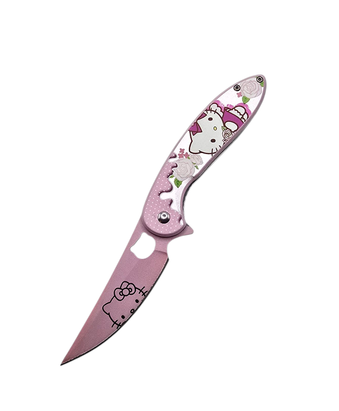 Pretty Pink Rose ‘N’ Cat Folding Pocket Knife