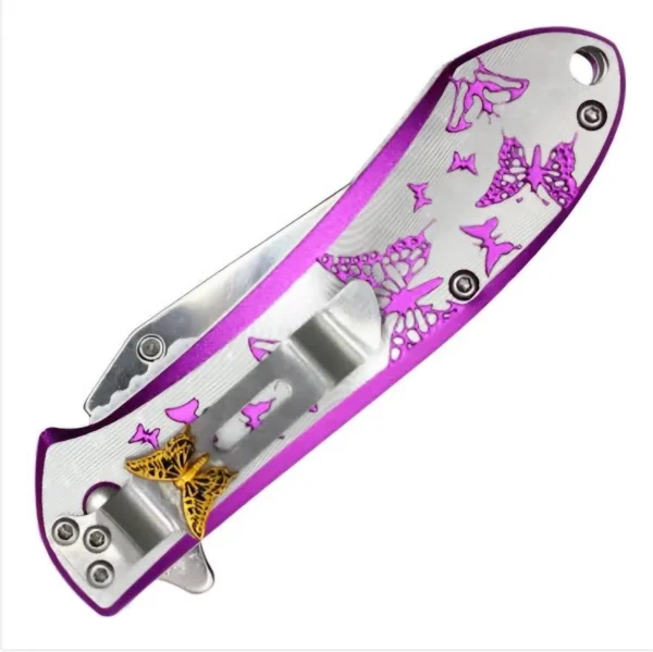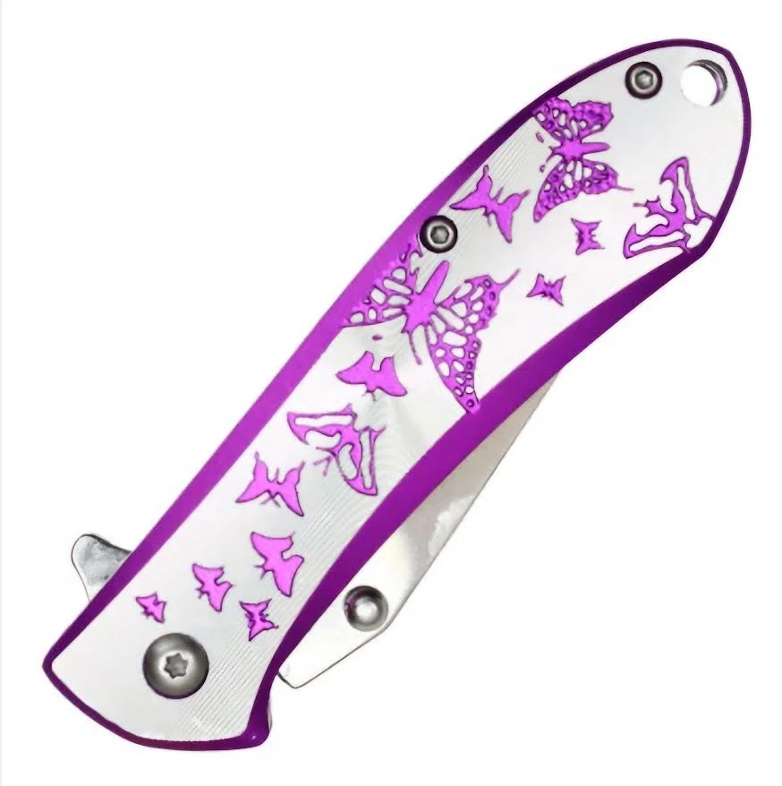 Handle Length: 4” Stainless steel Handle with Purple Butterflies
