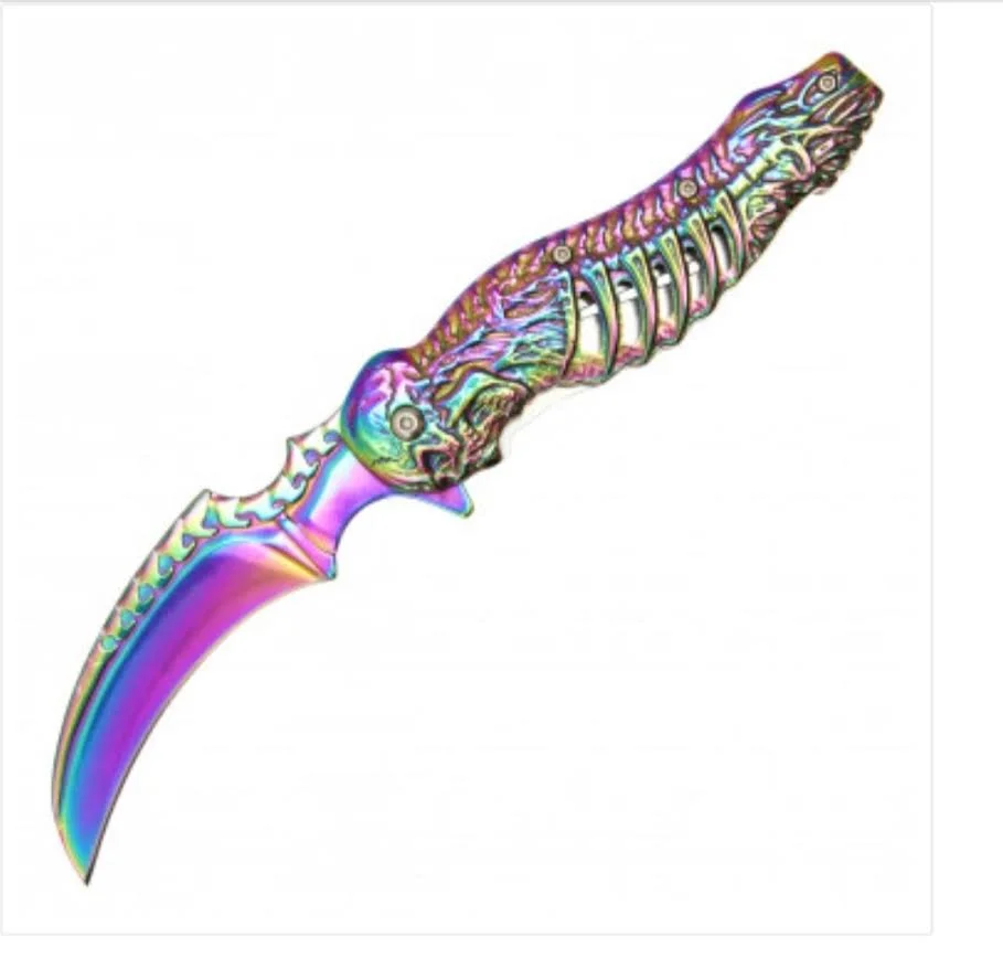 Rainbow Skull Eliminator Folding Pocket Knife